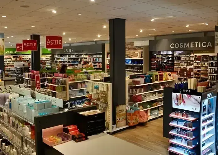 Stocks all bathroom items such as shampoo and toothpaste. Basic non-prescription medications, usually Dutch brands.